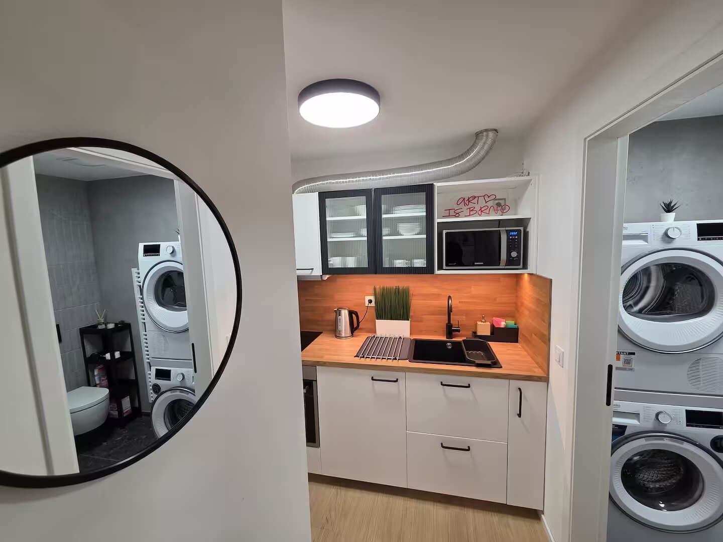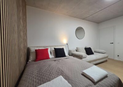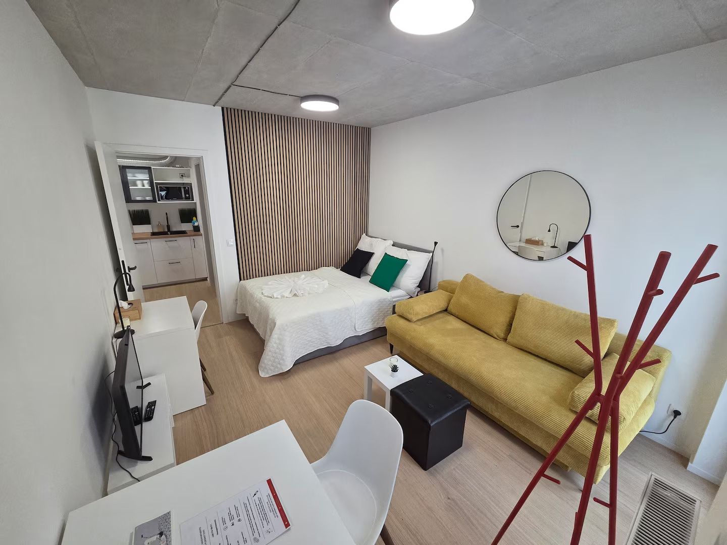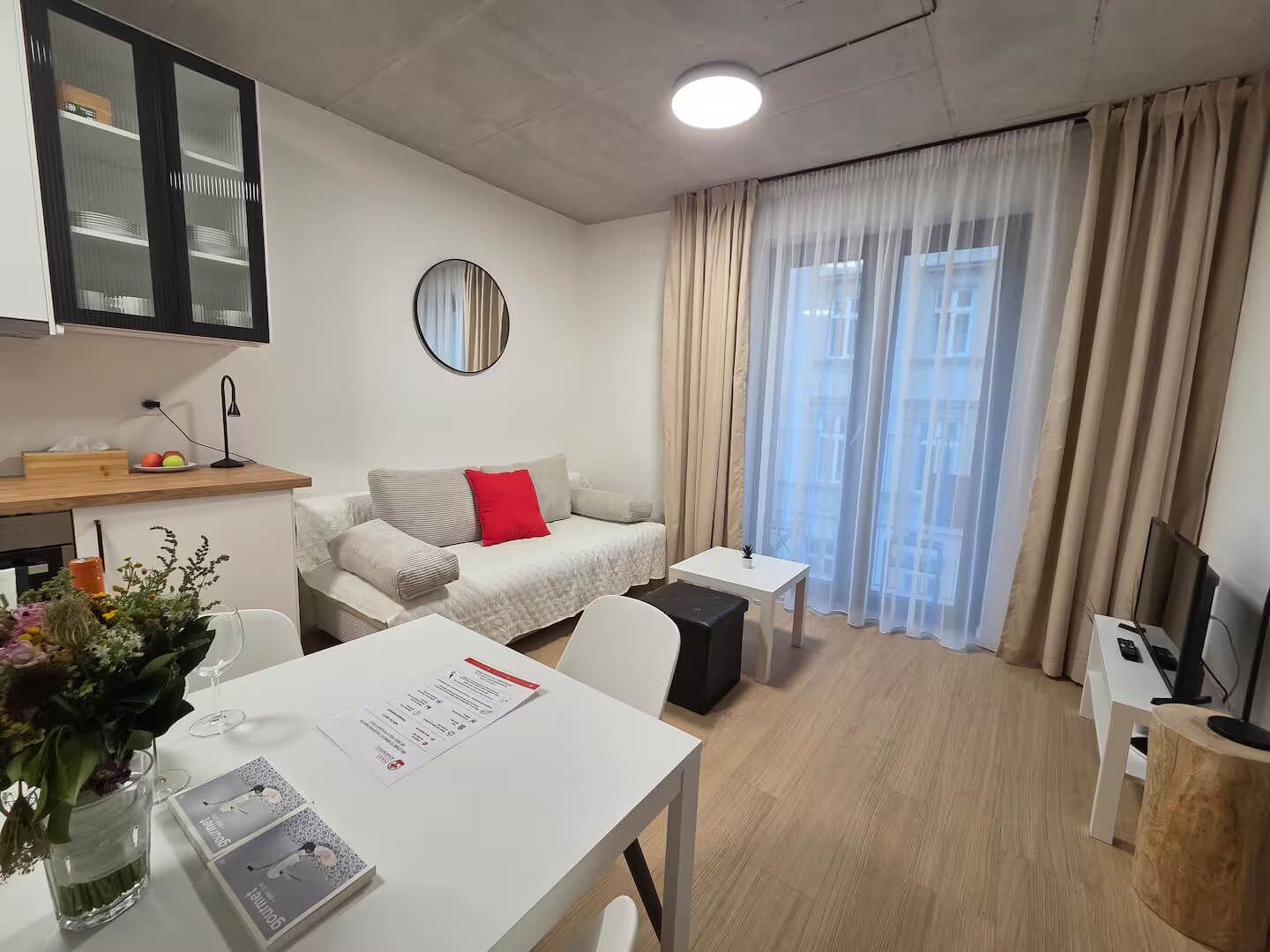 Thanks to their location, these apartments are an ideal choice for managers, families with children, or couples. The center of Brno, the train station, and Villa Tugendhat are within walking distance, while the Brno Exhibition Center is accessible by tram in 10 minutes. Shops, restaurants, bars, pharmacies, bookstores, and services are nearby.