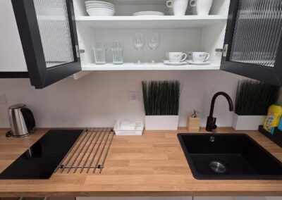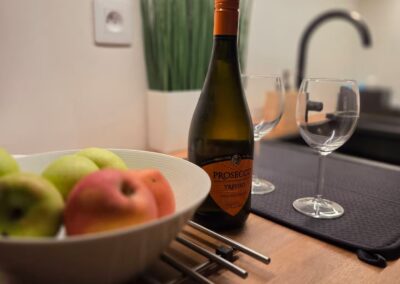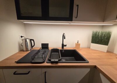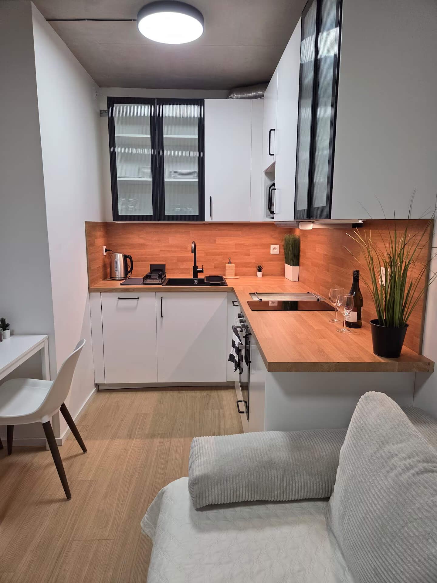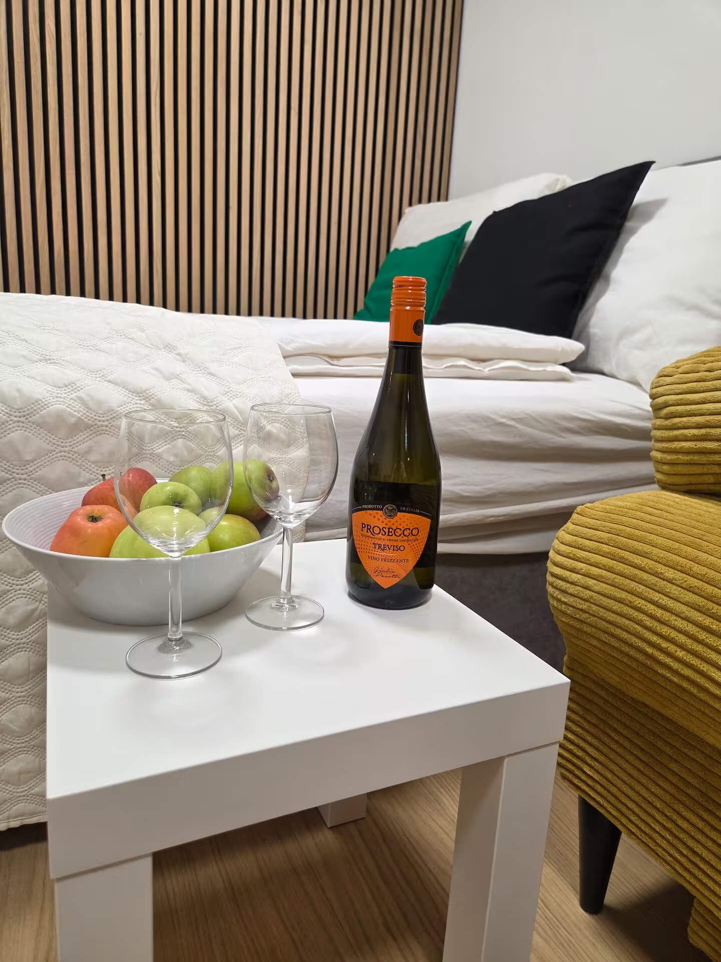 There are a total of 6 apartments, with four being 1+kk (one with a terrace) and two being 2+kk (one with a balcony). We offer the option of using a private parking lot (for 375 CZK or 15 € per night). The apartments comfortably accommodate 4 to 6 guests . Pets are allowed for a fee, and upon arrival, you will receive a small refreshment and a welcome drink. Wi-Fi is provided.