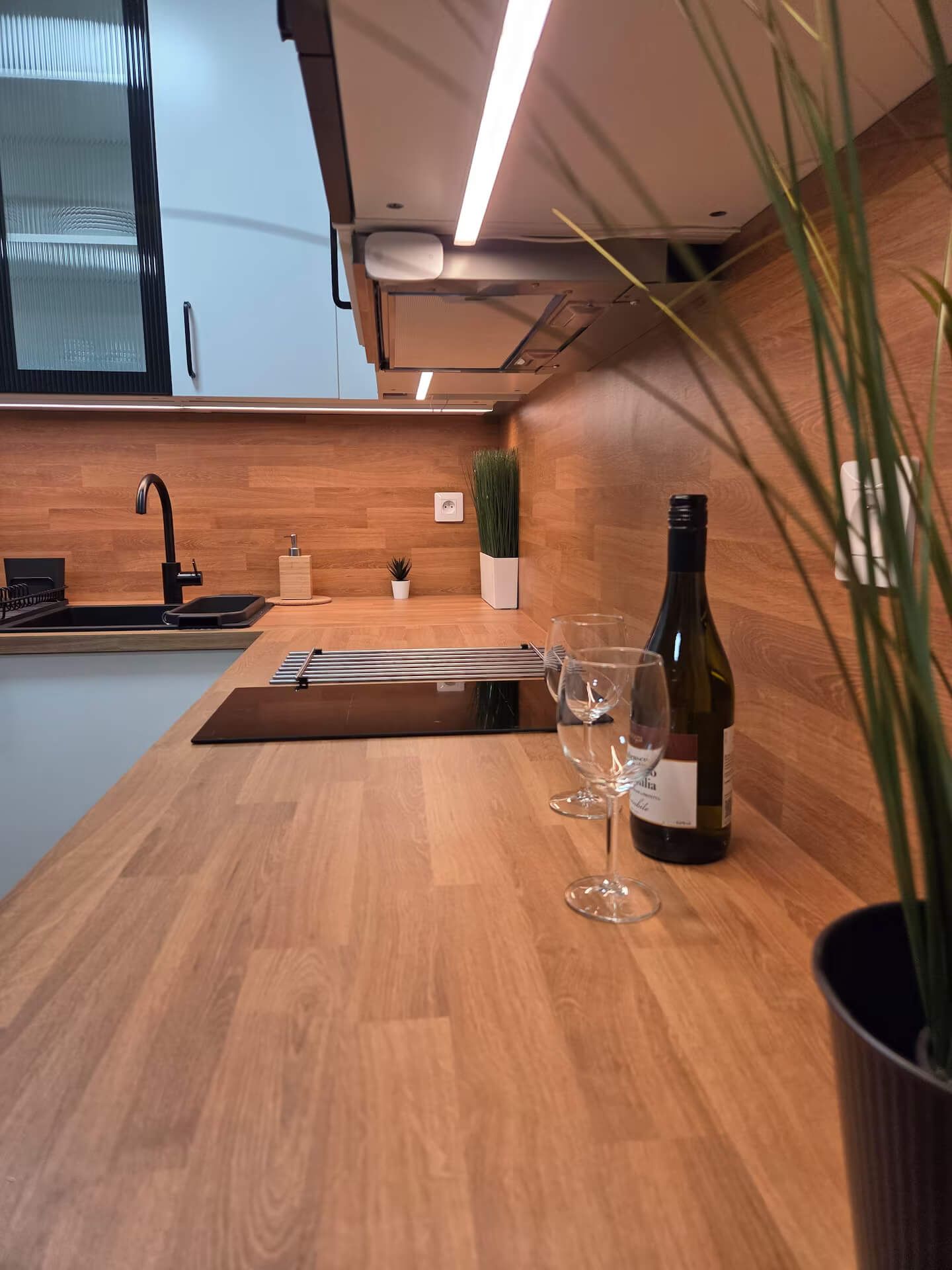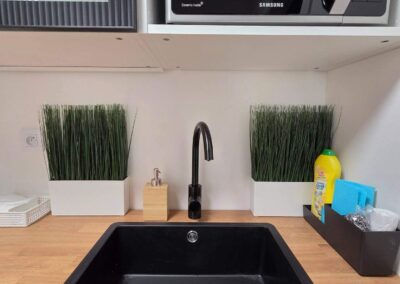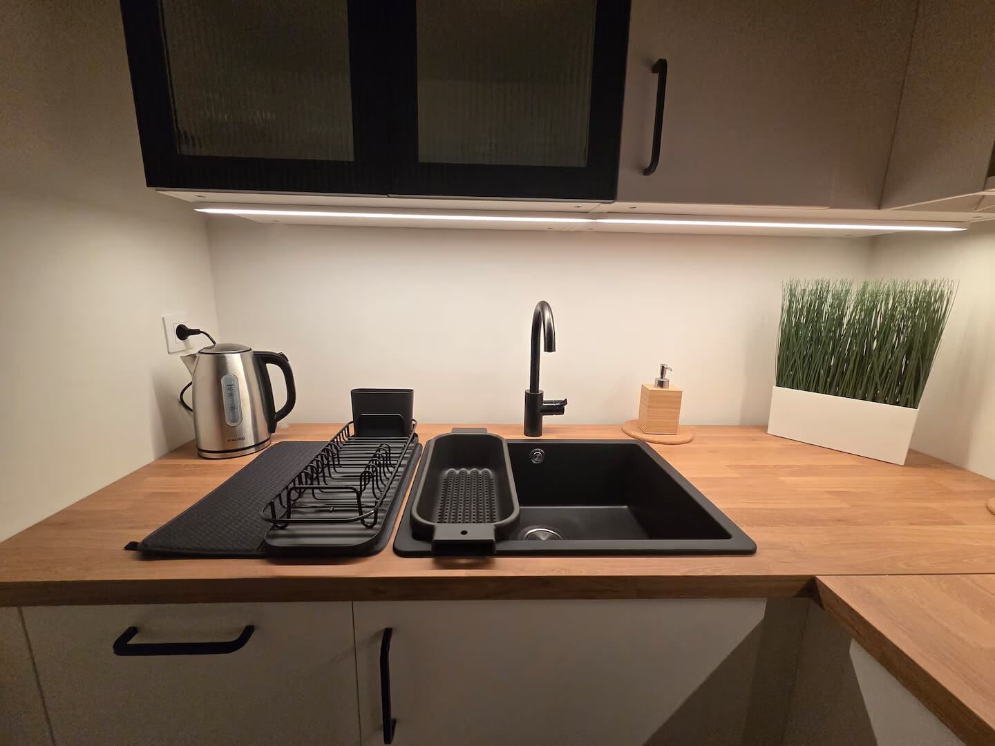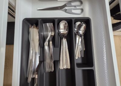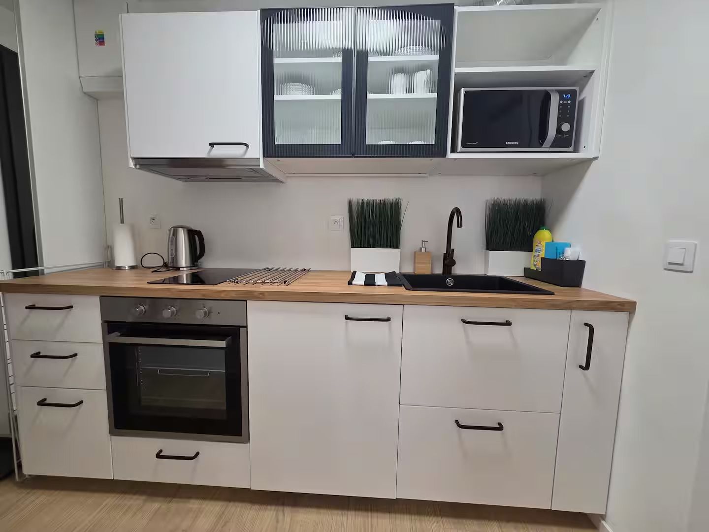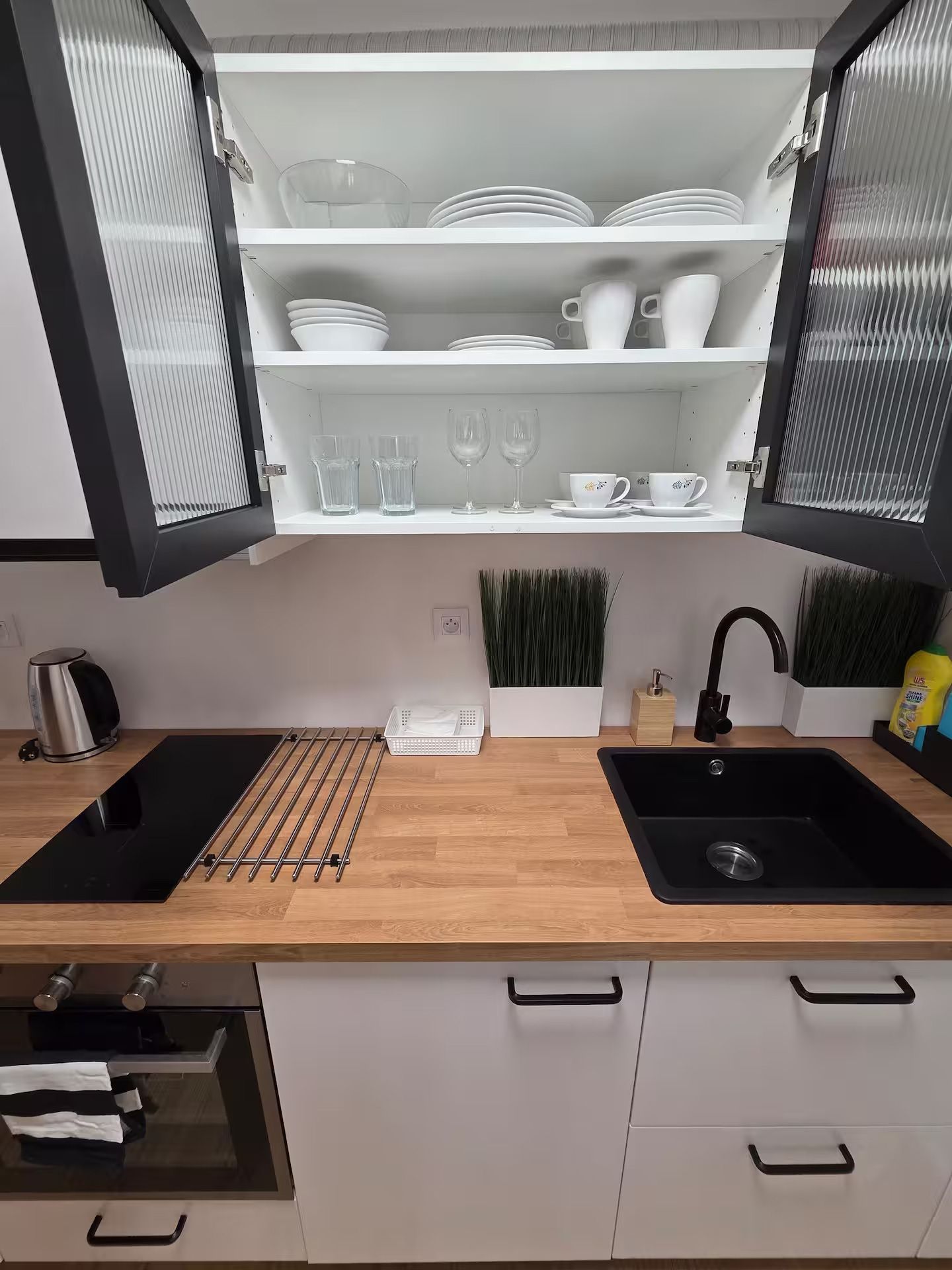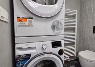 Kuchyně je vybavena standardními spotřebiči a nádobím – myčka, mikrovlnná trouba, toustovač, sklokeramická varná deska, trouba, pračka atd. V koupelně se sprchovým koutem najdete fén a toaletní potřeby. Ložnice disponuje manželskou postelí (oddělené postele na požádání), rozkládací pohovkou, jednolůžkem ,LCD TV a pracovním stolem.